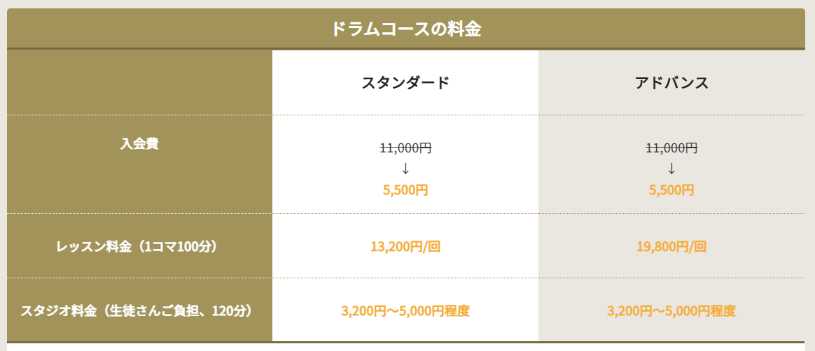 ※ドラムレッスンの毎月の最少レッスン回数は1回です。